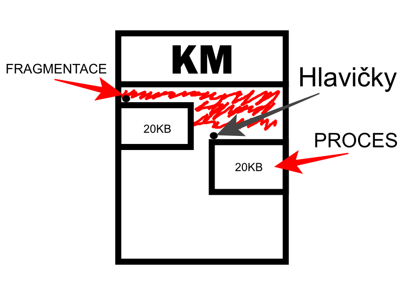 - Důsledkem je situace, kdy je sice relativně velké množství volné paměti, ale nikoliv souvislé bloky rozumné velikosti